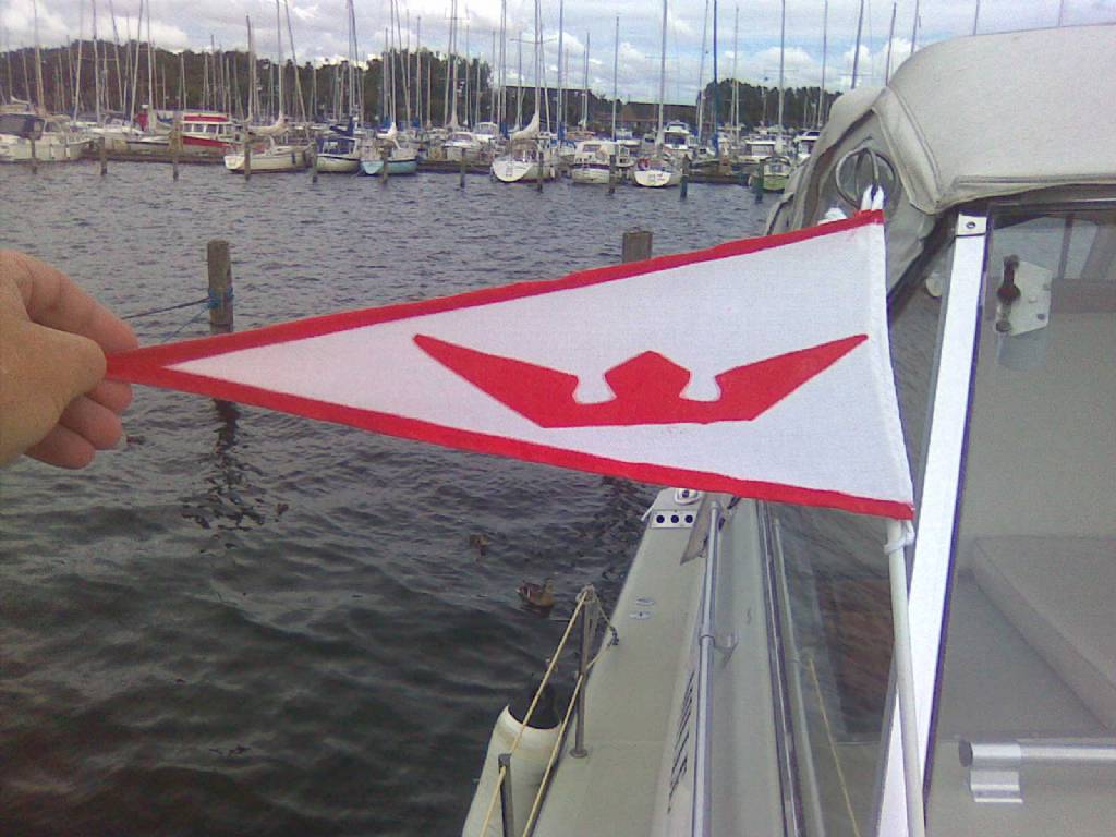 Jag har min vimpel för att visa att jag är med i Clubben samt att jag har två andra vimplar för de båtclubbar jag är med i.