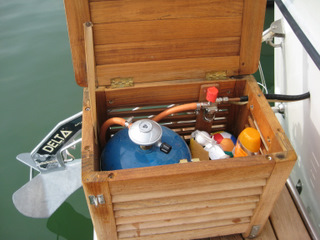 Det fungerar mycket bra och känns också tryggt att ha gasolbehållaren utanför skrovet.