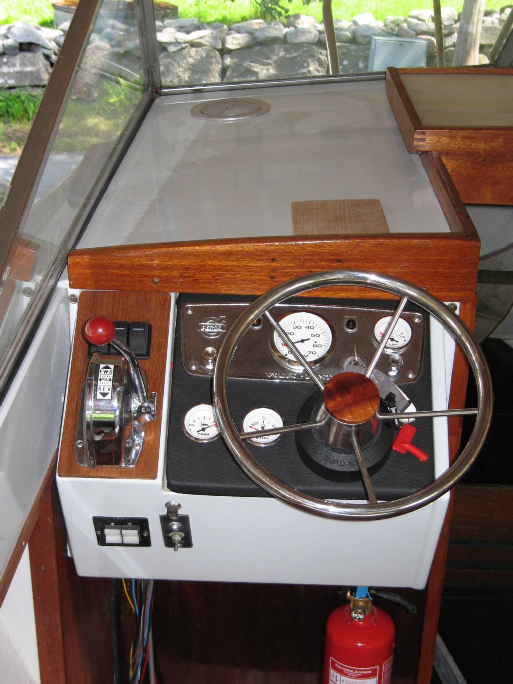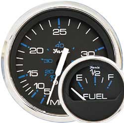 Da jeg innstallerte ny motor i 2006, (volvo penta) så var det muligheter for å velge instrumeneter med chromede ringer rundt. Jeg fant et bilde fra i sommer; der kan du (så vidt..) se hur de ser ut. De var nærme nok for meg. Det finnes sikkert flere varianter på nettet.