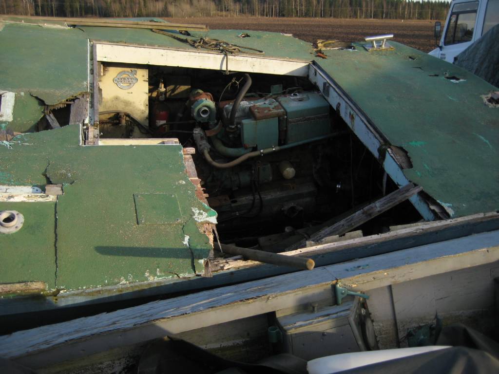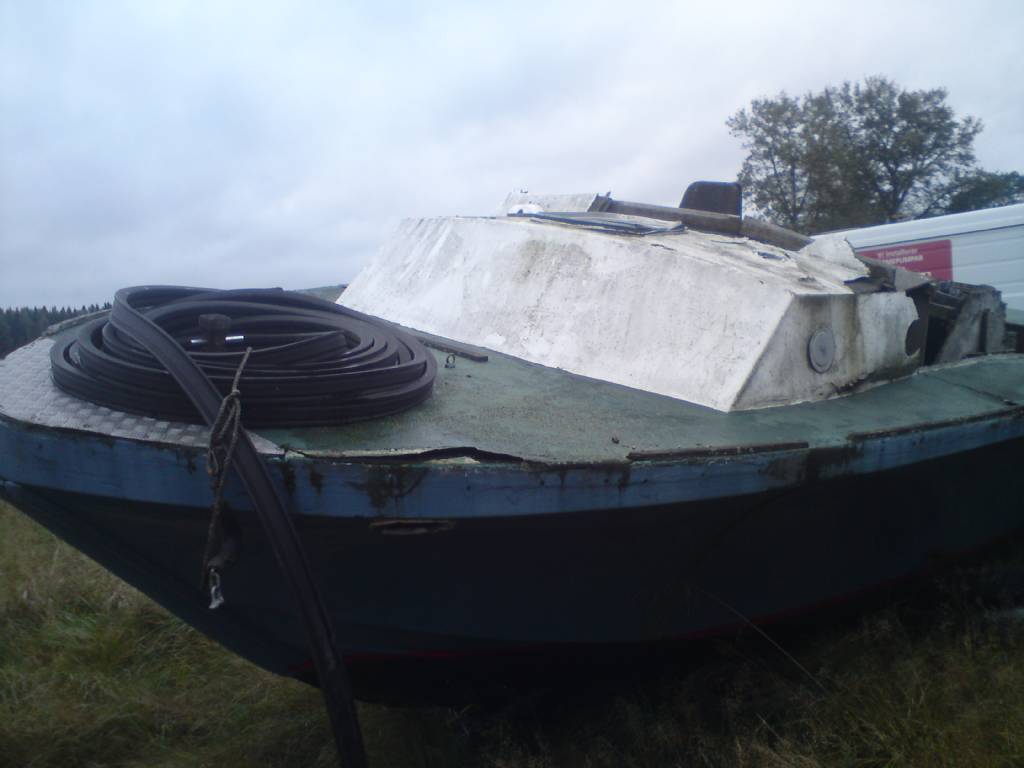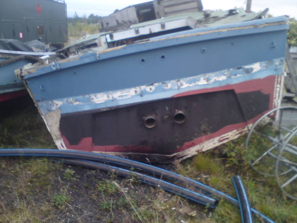 Verkar vara i ett bedrövligt skick. Hela styrhytten är bortsliten samt ett stort hål i botten.