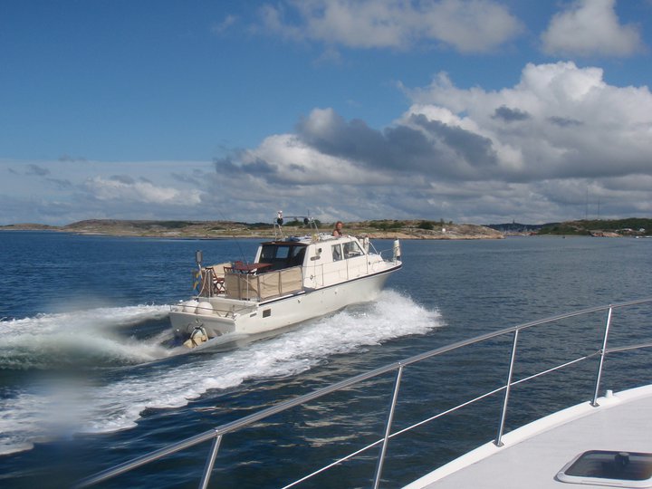 I Frändefors Dalsland ligger denna P32 som tydligen tjänat som Taxibåt .
