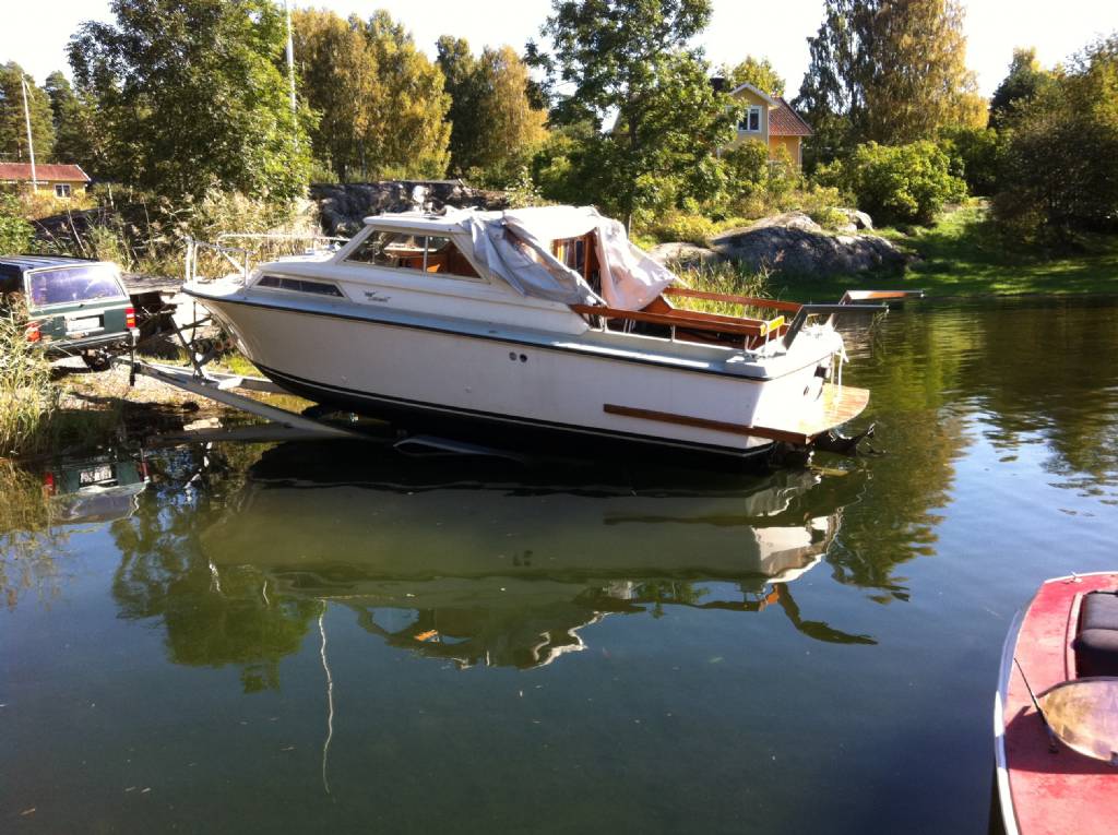 Hejsan Måns. Denna her badbrygga er definitivt hemmasnikred. På denna båt har någon konstrueret en badbrygga helt av træ med selva plattformen på akterspegeln av marinplywood och med integrerede avviserlister på sidan av båten.