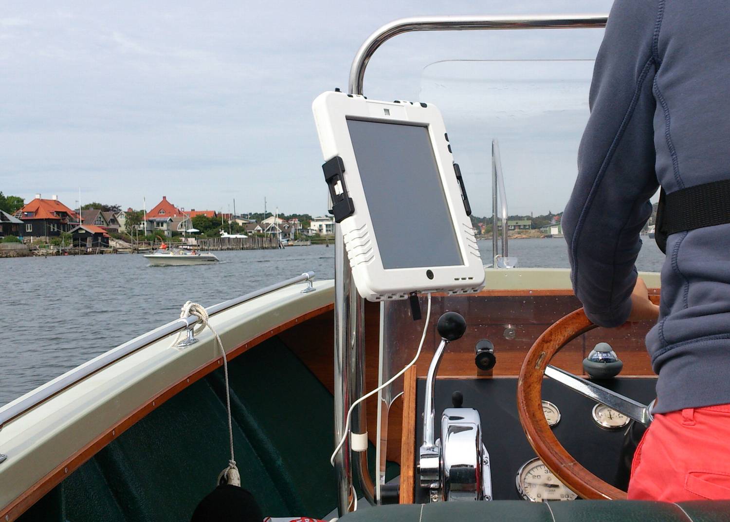 Det är ju så klart lite extra jobb med att lägga in iPaden i skyddet, men jag antar att den får ligga i den under hela tiden man är i båten.