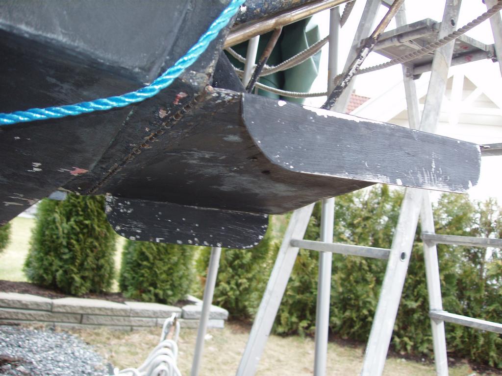 I begge sider af trimplanerne er, som jeg ser det, fra forkant til bagkant i en 90 graders vinkel på disse, påsvejst en ca. 70 mm høj rustfri skinne af samme pladetykkelse som trimplanerne og de kommer derved til at fungere som en slags minikøl. Forkanten er sikkert skåret i en vinkel på 45 grader så tang og lignende glider af under sejlads. MVH. Finn 1786.