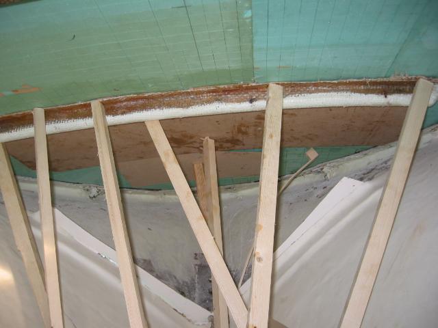 billedet viser hvordan det så ud da jeg begyndte at fjerne lammineringen under fordækket. Rindækket har flere steder samme problem