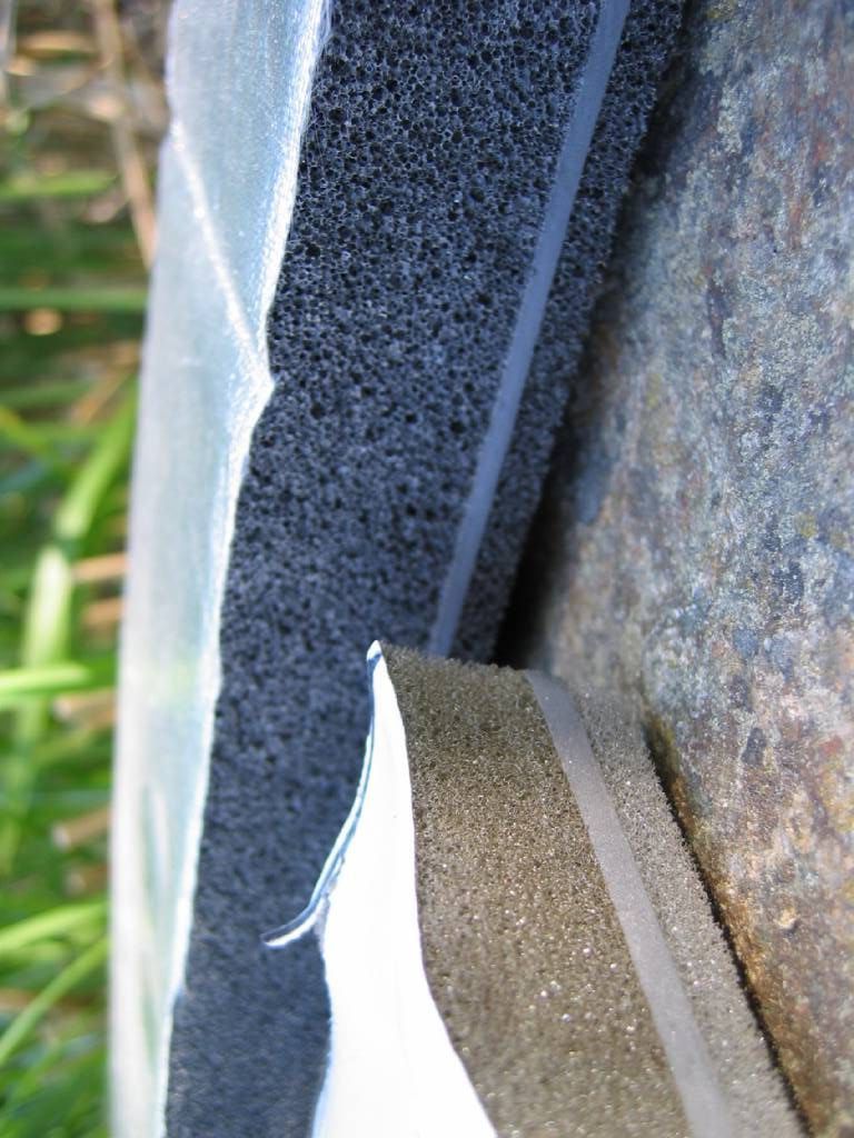 Skickar en bild på isolermattorna som jag använt. Den tunnare är Biltemas variant. Man ser den ingjutna gummimattan med ngn blyinblandning.