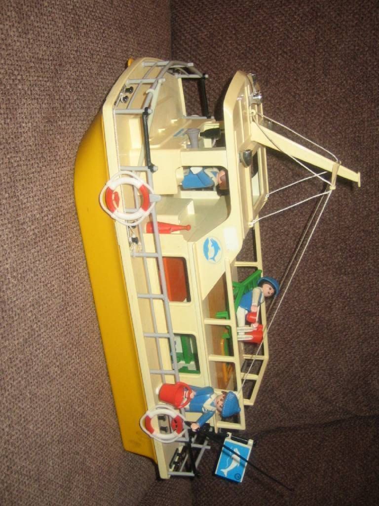 Satt hemma och var nöjd över att äntligen ha fått hem min Coronet 21 dc. Man har på senaste tid blivit en riktigt inbiten Coronetfreak. Båttankarna flöt iväg och jag började fundera på när jag var liten. Plötsligt när jag surfade in och tittade i modellarkivet på 33 Houseboat så slog det mig! Hastigt iväg med bilen till morsans hus, upp i mitt gamla pojkrum och därifrån ut på vinden. Efter lite rotande o letande hittade jag den! Min kära gamla "husbåt"! En leksaksbåt gjord i plast av Playmobil (dansk leksaksfirma om jag har rätt) och mycket bra byggd. Om jag minns rätt så fick jag den i julklapp av mina föräldrar nån gång på tidiga 80-talet. Och den fanns kvar ännu, med massor av detaljer kvar, tex. små knivar, gafflar, kastruller, fat, gubbar, radio, tuta, fiskespön m.m. Inuti finns det soffor, bord, hyllor, pentry m.m. Och allt dessutom i mycket bra skick! Det enda som fattas är en batteridriven spolformad blå motor man kunde fästa under skrovet. Kommer ihåg att den fick bra fart i badkaret! :)