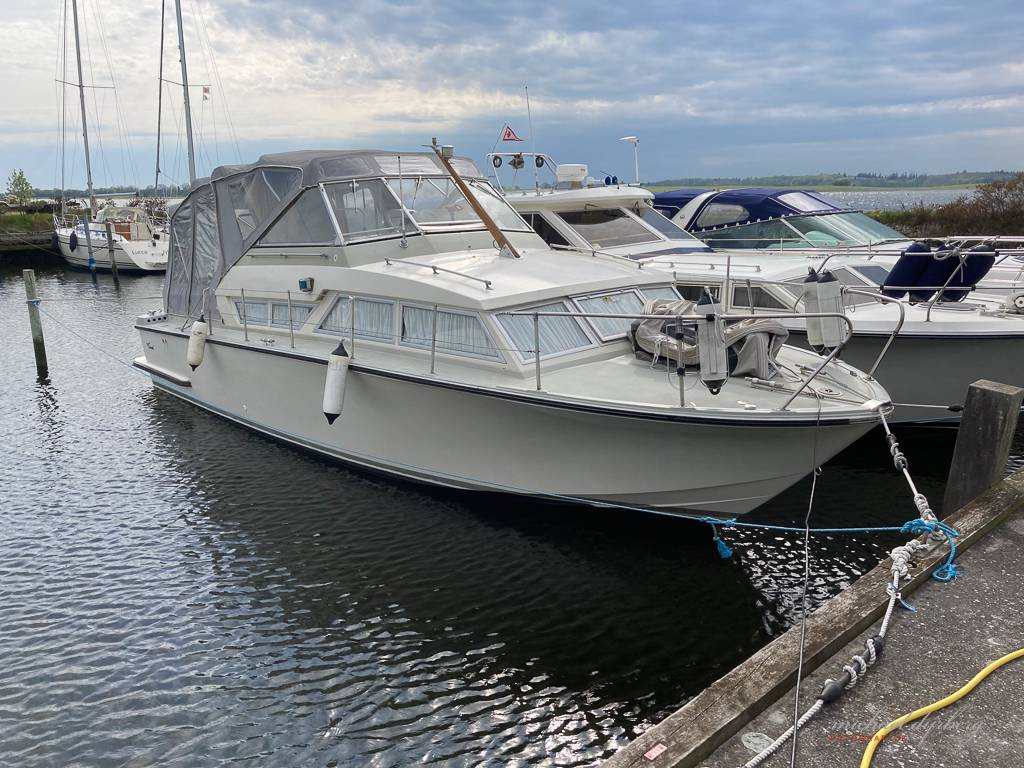 En ejer. Leveret i 1973. Nye blokke, nye startere, nye knæ, hydraulik styring 2019/22, nye elektriske trim 2023, trænger til ny kaleche derfor den lave pris. 2-pers gummibåd og vinterstativ og vinter pressenning medfølger